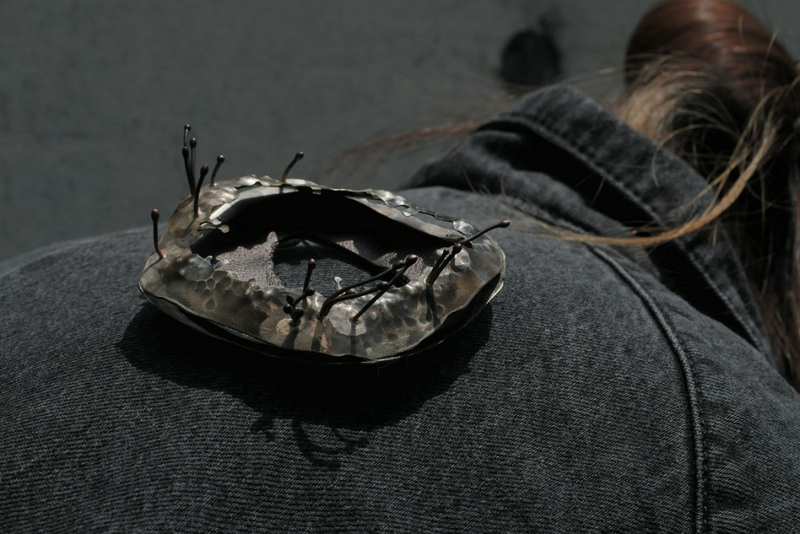 Edge Series-1: The natural rough edges are left after tearing. He playfully walks through the gaps, and lifts the edge oil and metal edges one by one. Edges Series -2: Edges growing from the body as broken, crumpled flowers. hole series It swelled up after being bitten by a bug and ended up with lovely holes in the leather. Some holes are like mushrooms, some are like tears, they are as precious as gems, so I made a special home for them with metal.