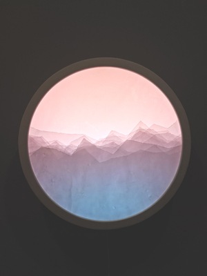 紙,油料、壓克力顏料、Arduino、LEDs、氣溫數據 41 cm x 41 cm x 9 cm