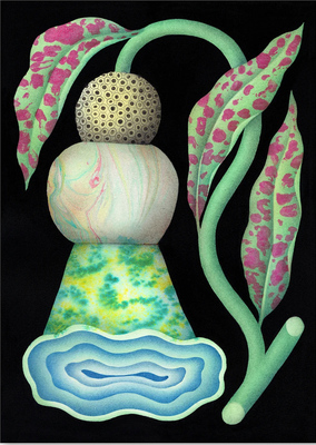 Soft pastels, marbling and ink on paper 30 x 24 cm